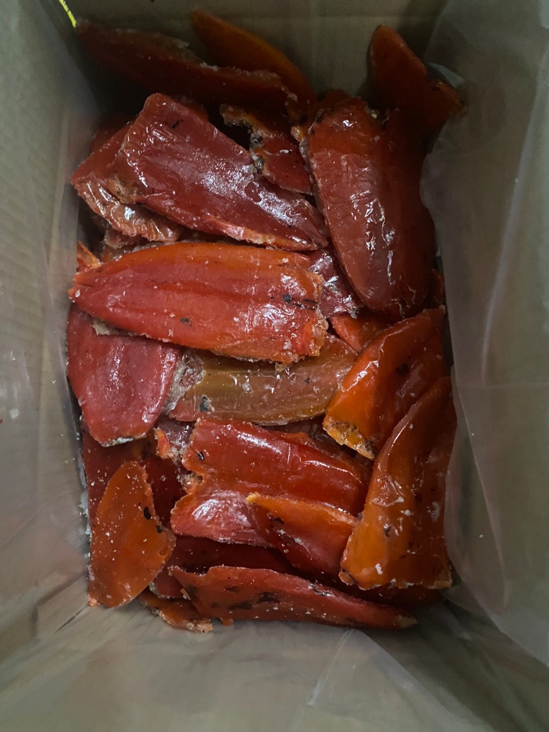 Pečena, oljuštena, sa peteljkom i semenkama upakovana u kartonsku ambalažu, sa unatrašnjom kesom.